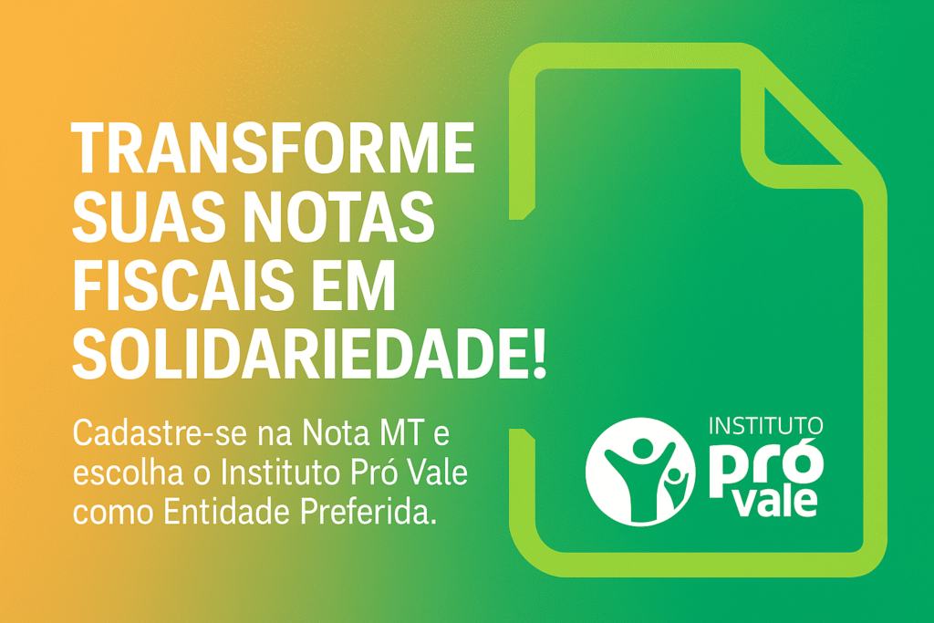 Cadastre-se na Nota MT e escolha o Instituto Pró Vale como sua Entidade Preferida.